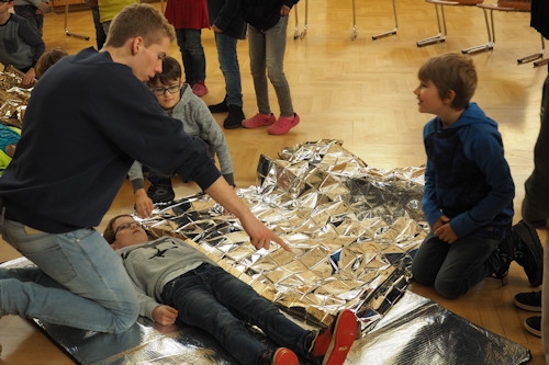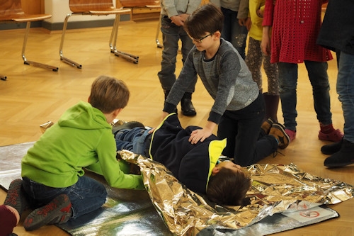 Ein kleiner, aber auch großer Unfall ist schnell passiert. Aber was macht man dann als Helfer als erstes? Was ist wichtig, wie hilft man am besten? Das und viele weitere Fragen wurden unseren Drittklässlern in fünf Doppelstunden beigebracht. Geschult wurden sie durch Helfer des Arbeiter-Samariter-Bund. Dabei ging es um Themen wie man richtig Hilfe ruft, die stabile Seitenlage wurde gelernt, Verbände richtig anlegen und vieles mehr.