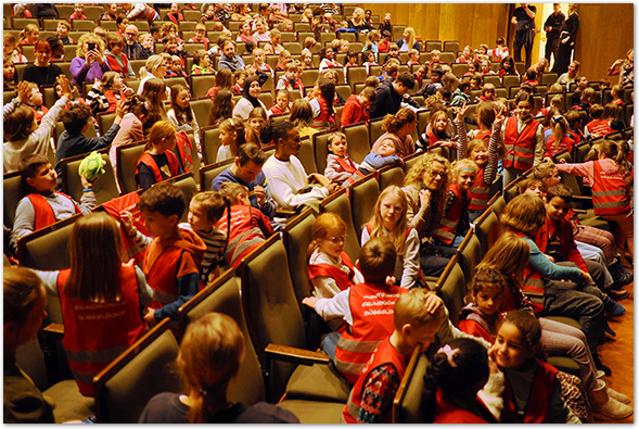 Alleine schon das hereinkommen in diesen großen Theatersaal ist etwas besonderes. Die Sitzreihen füllen sich langsam, die Bühne liegt noch groß und hoch im Dunkeln.