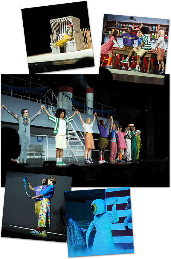 Doch dann wird es im Zuschauerraum dunkel und auf der Bühne entfaltet sich eine spannende und auch lustige Geschichte rund um Emil und seine Freunde. Alles ist hier, im Gegensatz zu einem Film, so nahe. Alles ist echt, wirklich da. Dabei verzaubert auch die Bühne mit all ihren Tricks. Da versinkt ein Ferienhaus im Boden und verwandelt sich in einen Sandstrand. Oder alles dreht sich weg und ein komplettes Varieté-Theater kommt nach vorne. Und zum Schluss fährt sogar ein Dampfer mit rauchenden Schornsteinen ein. Alles unmittelbar und direkt vor den staunenden Augen der Kinder. DAS kann nur das Theater!