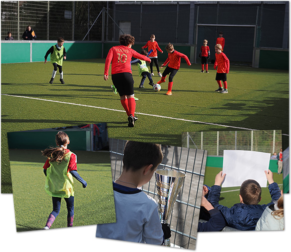 Einmal im Jahr veranstalten wir unser schulinternes Fußballturnier. Zwölf Mannschaften kämpfen hier um den Schulpokal. Schon Wochen vorher wird intensiv trainiert, Fanplakate gemalt und Parolen geübt. An zwei Tagen wird das Turnier ausgetragen, und auch wenn es natürlich nur eine Siegermannschaft geben kann, sind diese Tage für alle eines der Hightlights unseres Sportjahres.
