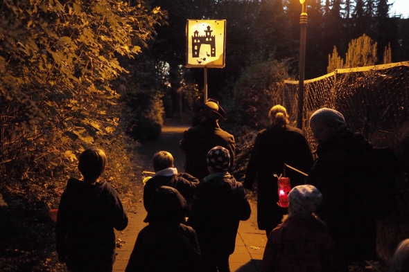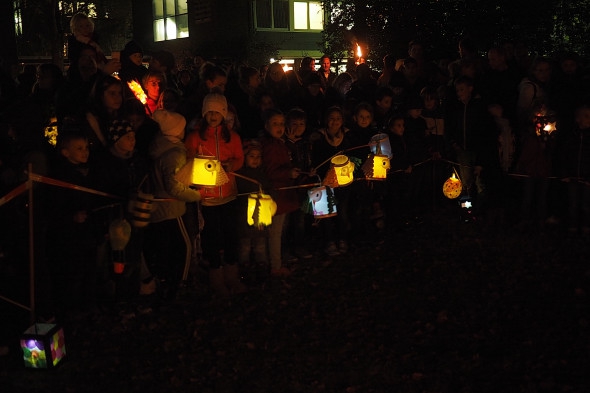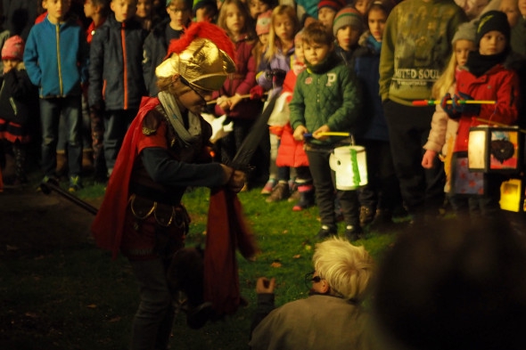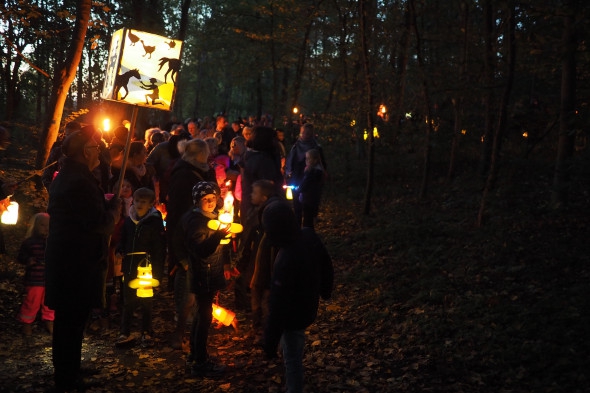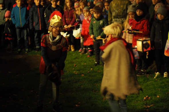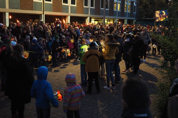 Wie jedes Jahr bastelten unsere Schüler wieder eifrig Laternen, die dann das erste Mal auf unserem St. Martinszug ausgeführt wurden. Unser Nachtwächter Herr Schmitz führte alle Schüler, Eltern und Geschwisterkinder sicher durch die ansonsten sehr dunklen Garather Kämpen, die nun durch all die schönen Lampen festlich beleuchtet wurde.