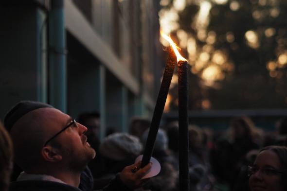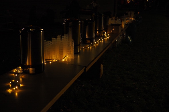 Abschließend gab es am großen Feuer natürlich noch die Geschichte der Mantelteilung zu sehen, aufgeführt durch unsere Theatergruppe. Und dann konnten sich alle an Fruchtpunsch, Bratwürstchen und den bereitgestellten Weckmännern wärmen und stärken.