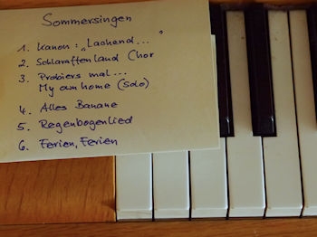 Das jahreszeitliche Singen ist vor einigen Jahren hinzugekommen. Zu Beginn der Jahreszeiten Frühjahr, Sommer und Herbst wird jeweils ein Montag festgelegt an dem Lieder der Saison gesungen werden. Alle freuen sich an den Liedern, die aus dem klassischen Repertoire oder auch modern sind. Im Musikunterricht lernen die Kinder die Lieder kennen und lernen ihre Texte.
