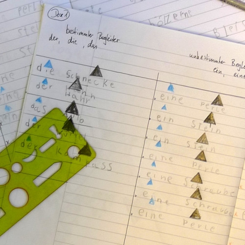 …und darum ist es auch ganz klar, dass nicht alle Kinder zur gleichen Zeit das Gleiche arbeiten können. Kinder sind nicht gleich, sondern sehr unterschiedlich. Das ist eine Bereicherung. Bei uns lernen Kinder verschiedenen Alters, verschiedener Neigungen, verschiedener Muttersprachen, behinderte, nicht-behinderte Kinder und besonders begabte Kinder; alle zusammen, aber jeder bekommt das, was er für seine Entwicklung und Förderung benötigt.