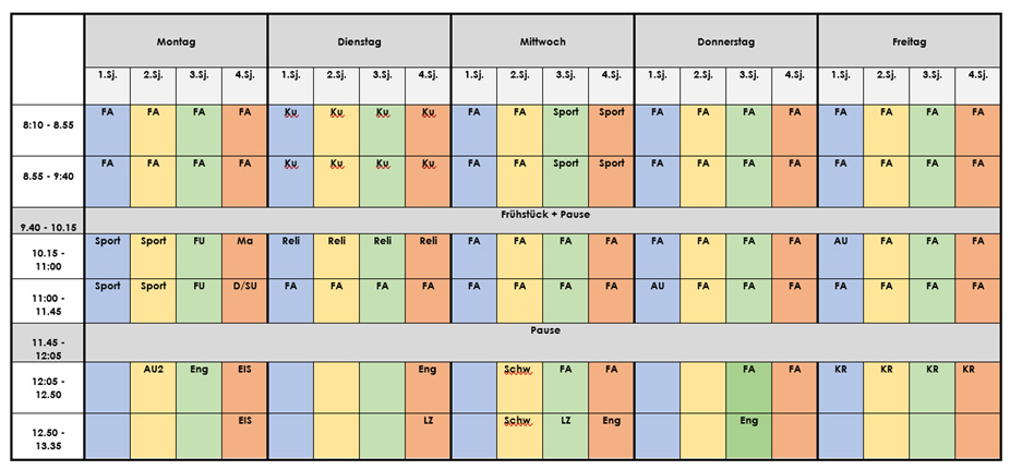 Wir starten jeden Tag mit einem offenen Anfang von 5 Minuten vor Acht bis 10 Minuten nach Acht. In den ersten Stunden findet jeden Tag unsere Freiarbeit statt.