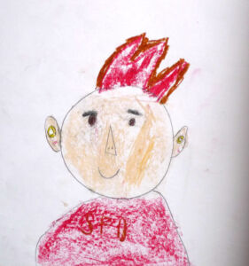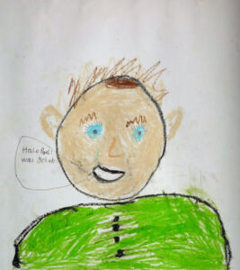 Auf der Insel angekommen, trafen wir Sally. Sally fragte: „Wo kommt ihr denn her?“ – Hamed sagte: „wir sind auf einem Drachen gelandet, und der hat uns hierher geflogen.“ – Sally rief: „Also ist das eine Dracheninsel!“
