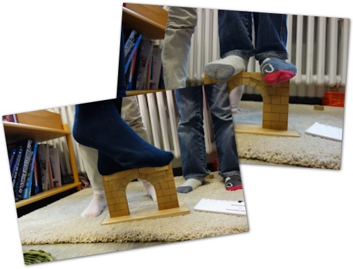 Am Schluss können wir die Stütze wegziehen. Die Brücke ist so stabil, dass wir uns sogar drauf stellen können.